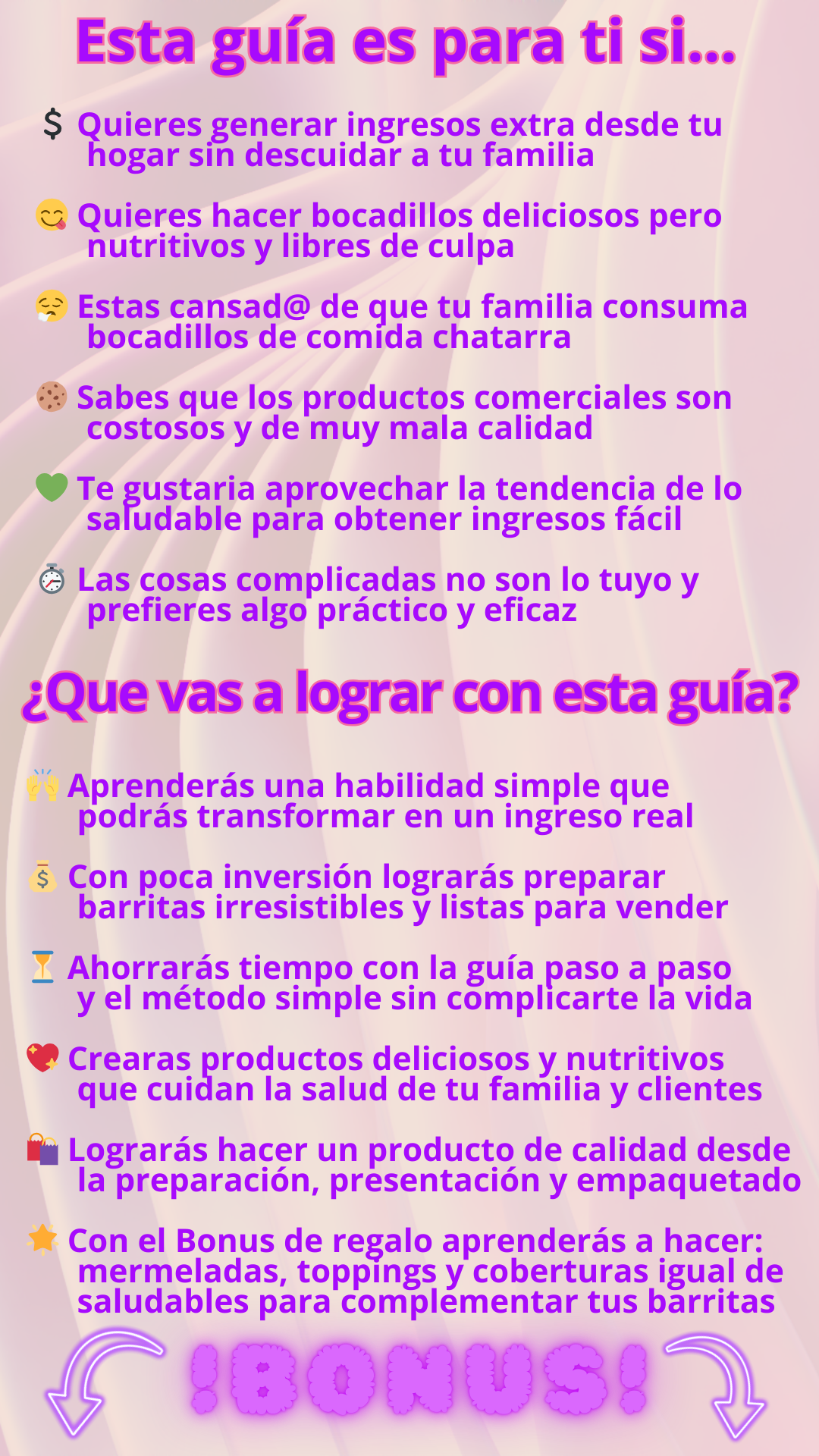 - Al completar tu compra, vas a recibir un correo con el asunto “Tu acceso a la Guía de Barritas Saludables”.